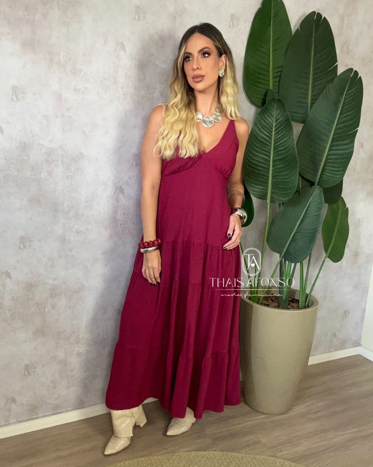 ✔ Vestido longo, trazendo elegância e fluidez ao look
